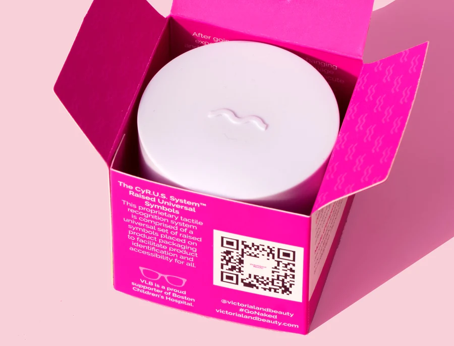 CyR.U.S. is a packaging communication system comprised of a set of universal raised symbols and QR code technology that provides easy product identification through touch and audible product information with a simple scan to all users. This simple to use raised universal symbol system is comprised of 11 raised symbols to facilitate product identification. Each QR code is embossed to allow for easy identification to scan using a smartphone. In the future, Victorialand plans to offer audible product information in all languages.